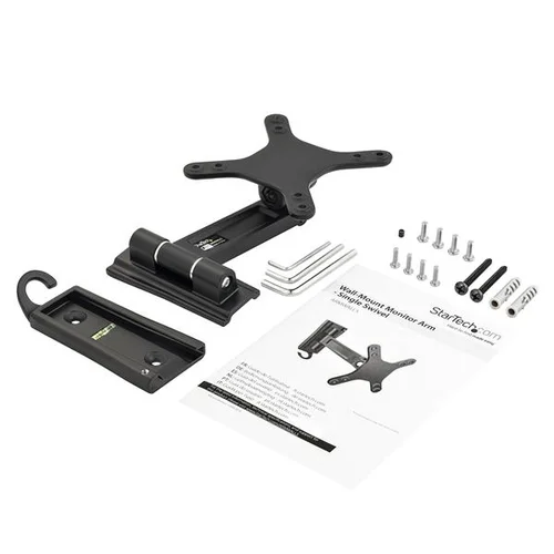 Save space by wall-mounting your monitor, and work more comfortably with the adjustable swivel mountWall-mount your computer monitor or flat-screen TV to free up space on your desk or table. This wall-mount monitor arm supports flat-panel displays up to 34” and provides 7.7” (195 mm) arm extension allowing versatile screen adjustment. The pivoting arm swivels +90° / - 90°and tilts to provide maximum viewing flexibility.Save space by wall-mounting your flat-panel displayThis monitor arm helps you save space on your desk or table surface, by letting you securely wall-mount a computer monitor or LED / LCD TV from 13” to 34” in size and up to 33 lb. (15 kg) in weight. It’s ideal for many different applications, including business, healthcare or financial settings, where you may want to share your screen with patients, clients, or other visitors. The wall-mount monitor arm also works well in office settings or workspaces that back against a wall.Adjust your screen position with easeThe monitor arm extends 7.7” (195 mm), making it easy to change your screen position, so you can work more comfortably or share your screen with others. The adjustable single-swivel mount offers a full +90° / - 90° swivel, to move your screen easily to the left or right, to share your screen with maximum viewing flexibility. It tilts freely +45° / - 45°, allowing easy angle adjustment up or down to share your display, while collaborating with team members.Easy installationThe aluminum wall-mount monitor arm features slide-in wall plate construction for easy installation. To help keep your work area free of clutter, the monitor arm also features a cable clip that keep your cables neatly out of sight.The ARMWALLS is backed by a StarTech.com 5-year warranty and free lifetime technical support. The StarTech.com Advantage- Wall mount a VESA (75x75, 100x100) compatible display 13" to 34", flat screen, curved or ultrawide, with a max weight of 33.2 lb. (15 kg)- Save space by wall mounting your monitor or flat-screen TV and easily share your screen- Arm extends 7.7” (195 mm)