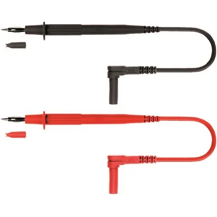 4mm Test Probe Set. From Multi-Contact, this test probe set includes a black and red silicone insulted test lead. At the end of each lead is a spring loaded MULTILAM test probe, and at the other end a MULTILAM plug with a rigid insulating sleeve. The test probe set is designed for CAT II measurement applications. Features and Benefits:. • Cat II • Rated Voltage of 1000V • Rated Current of 20A • Silicone Insulation • Nickel Plated