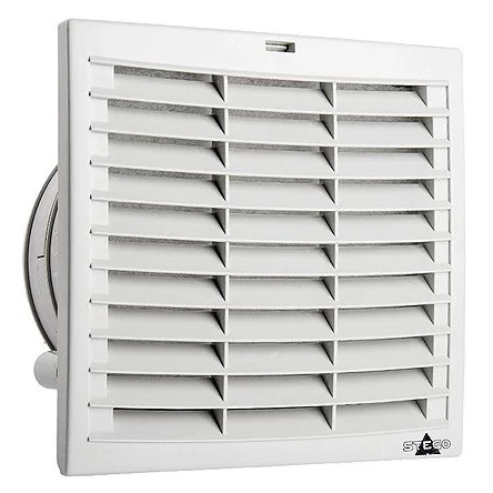 Stego Filter Fans Plus, FPI/FPO Series. The Filter Fan Plus series has been designed to optimise climate efficiency within enclosures and cabinets containing electronic/electrical components. The electronic components generate heat and these units disperse that heat with cooler, filtered air from outside the enclosure. Reducing the heat inside the enclosure improves performance and reliability of the electronic items and ultimately costs are kept lower. FPI or FPO. To choose which items are best for your application first decide which you need, FPI or FPO. Both systems utilise a new air-flap on the outlet which gives a higher degree of airflow to expel heated air more efficiently. The FPI system is for your more standard set-ups. A filtered fan is placed at the lower part of the enclosure pulling cooler air in. The air works its way up through the enclosure until it is expelled through the air-flap outlet mounted at the top end of the enclosure. The FPO system has a filtered inlet placed at the lower end of the enclosure but does not include the fan. Instead the fan is placed on the outlet pushing air out of the enclosure which ultimately means the air is drawn in from the lower intake. This system is better for enclosures suffering from hot air pockets at the top of the enclosure. Ordering. Please note when ordering you need to order the inlet and outlet units separately. As an example, for a 230 V ac, 92 mm, FPI system you need to order item ; 915-9987 915-9987 (filter fan inlet) and item ; 916-0019 916-0019 (outlet). Various sizes are available and each unit has its compatible partner listed in essential accessories for that size. Each size also has a 230 V ac and a 110 V ac fan to choose from. Mounting. The front section mounts to the rear section with a simple ratchet type system making instillation quick and simple. It accommodates various panel thicknesses and can easily be released if necessary. Features. New air-flap outlet technology for high airflow Easy Mounting Protection type test/Environmental rating by independent testing institutes (VDE and UL) Two systems for optimal airflow (FPI/FPO) Standard enclosure cut-out sizes (5 sizes) Filter mat included with the FPI system filter fan and FPO intake filter.