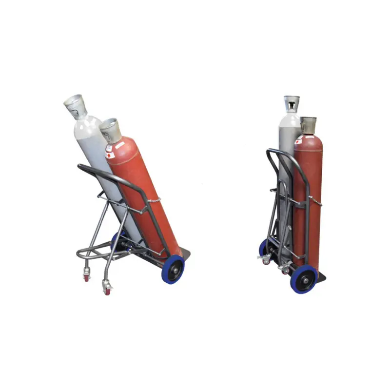 TheStockman 2 Bottle Trolley - SAC200-RSB is used for moving loads of 200 kg. It allows the transport of two gas bottles with a maximum diameter of 25 cm. The handling of the equipment is very easy and functional thanks to excellent stability. The premium wheels of this model are made of non-staining, silent blue elastic rubber with double-sealed ball bearings.
