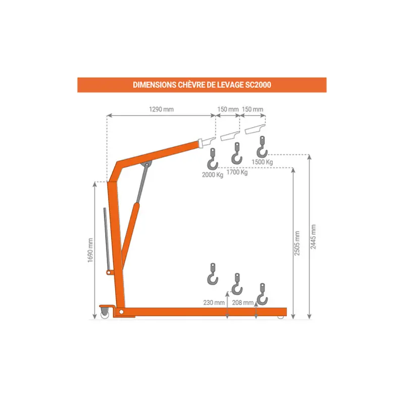 The STOCKMAN Manual Workshop Crane - Foldable - Load 2 tonnes - SC2000 is easy to use for your handling tasks. Indeed, with it, you can easily lift and transport loads of up to 2 tonnes. It features a hydraulic lift and a quick lift with a double pump, allowing you to elevate objects without the need for effort.