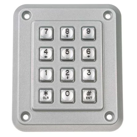 Durable IP65 keypad designed for outdoor environments, featuring a vandal-resistant metal casing.