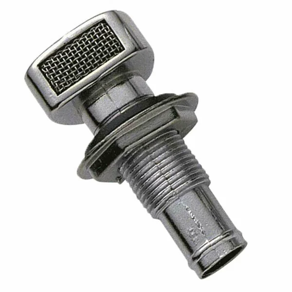 Chrome-plated brass tank vent. Stainless steel mesh defence.