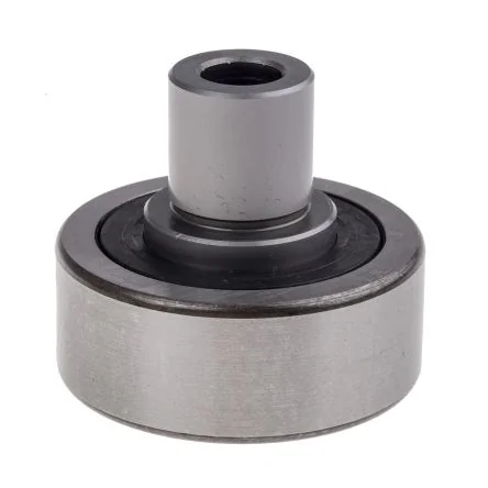 Ball bearing track rollers are self-retaining, single or double row ball bearings with particularly thick-walled outer rings. In addition to high radial forces, these bearings can also support axial forces in both directions. The outer rings have a crowned or cylindrical outside surface. Designs with a crowned outside surface are used where they are inclined in relation to the mating track and edge stresses must be avoided. Ball bearing track rollers are available with an inner ring, with a stud and with a plastic tyre on the outer ring.Outside surface profile of the outer ring Yoke type track rollers Anti-corrosion protection Sealing Lubrication Stud type track rollers Without eccentric collar With eccentric collar Sealing Lubrication Track rollers with plastic outer tyre Outside surface profile of the outer ring Maximum radial load Sealing Lubrication Operating temperature Suffixes Other products Enquiries