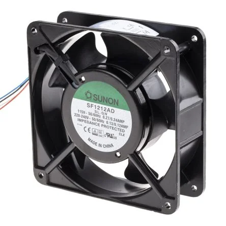 Sunon SF Series Sleeve Bearing AC Axial Fans. From ebm-papst, the SF Series AC axial fans are designed to deliver high performance while retaining a space saving size. This range of axial fans have ball bearings, which allow full operation at any orientation, as well as further noise reduction. Features and Benefits. • Low profile • Low power consumption • Air exhaust over struts • Protected against reverse polarity and locking. • Integrated electronic communication • Fibreglass reinforced plastic construction. Applications. These compact fans are suitable for a variety of applications. • Cabinet Cooling • Switch Networks • Power Systems • IT Systems • Medical • Industrial. FAQ. Q: What are the advantages of ball bearing fans over sleeve bearing fans? A: Ball bearing fans are typically less prone to wear and tear than sleeve bearing, which makes them ideal for a longer service life. They are also able to operate in higher temperatures, and in any orientation. However, they are less rugged and can be more easily disrupted by impact, and tend to be noisier than their sleeve bearing counterparts. Q: Are these fans durable? A: With aluminium housing material, these fans have a sturdy construction. Q: What are the advantages of AC fans over DC fans? A: AC fans are more suited for applications when a constant, even flow of air cooling is needed.