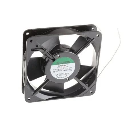 Sunon SP Series Ball Bearing AC Axial Fans. From Sunon, the SP series of AC axial fans feature a durable construction and an environmentally friendly design. Sunon AC ball bearing axial fans are a reliable and versatile solution to a variety of cooling requirements and feature a range of airflow options and speeds. Sunon AC fans are also long-life, making them a high value, low maintenance choice. Applications include automation control equipment, enclosures and converters. Features and Benefits. • Aluminium alloy frame • Low power consumption • Long motor life • Blow or extract mounting capabilities • Impedance protected • RoHS compliant. Applications. The SP Series of fans are suitable for a range of thermal management applications in both heating and cooling. • Refrigeration • HVAC • Industrial equipment • Medical equipment. FAQ. Q: What are the advantages of ball bearing fans over sleeve bearing fans? A: Ball bearing fans are typically less prone to wear and tear than sleeve bearing, which makes them ideal for a longer service life. They are also able to operate in higher temperatures, and in any orientation. However, they are less rugged and can be more easily disrupted by impact, and tend to be noisier than their sleeve bearing counterparts. Q: What are the advantages of AC fans over DC fans? A: AC fans are more suited for applications when a constant, even flow of air cooling is needed. Q: Are these fans durable? A: With aluminium housing material, these fans have a sturdy construction suitable for a long service life.