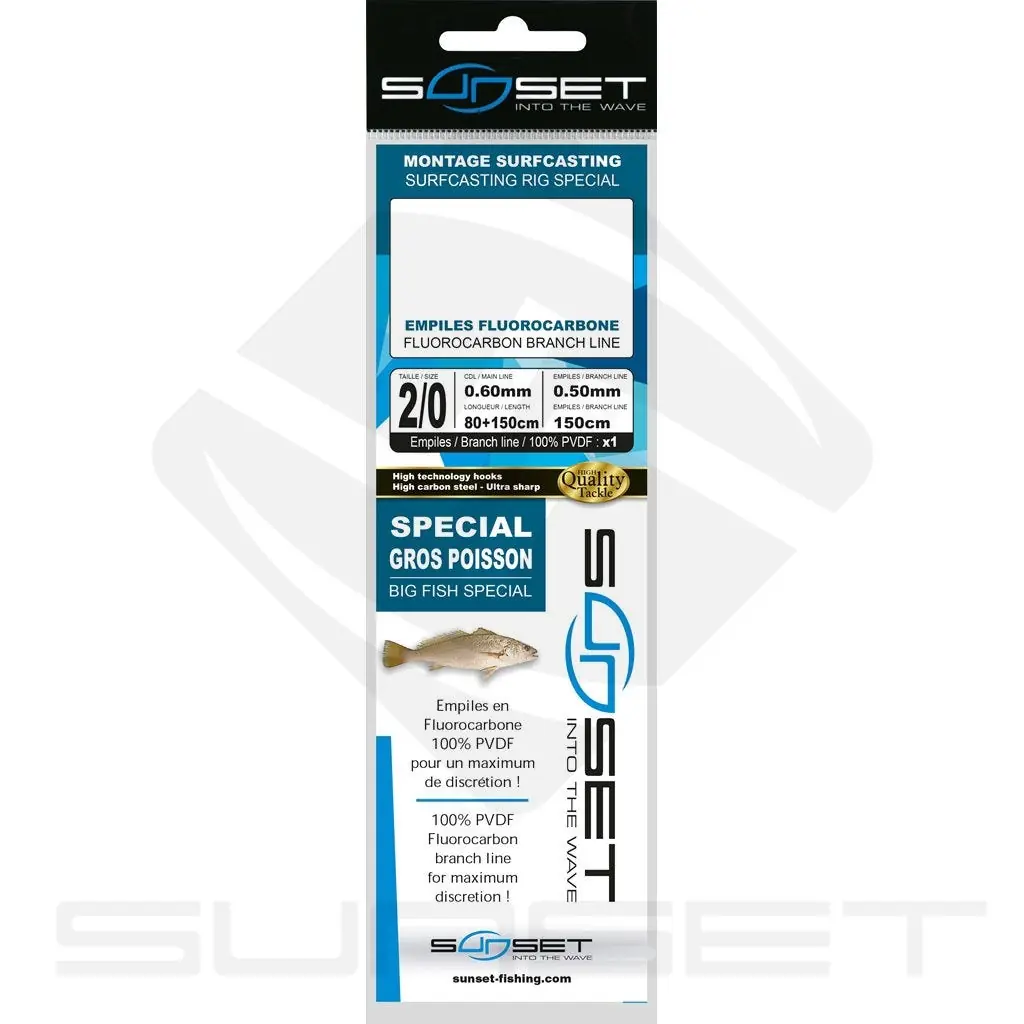 The Sunset BDL Surf Fluoro RS Competition Special Big Fish Rig is meticulously designed for surfcasting enthusiasts targeting large trophy fish such as bass and meagre. This rig offers a combination of durability, sensitivity, and stealth to enhance your fishing experience.