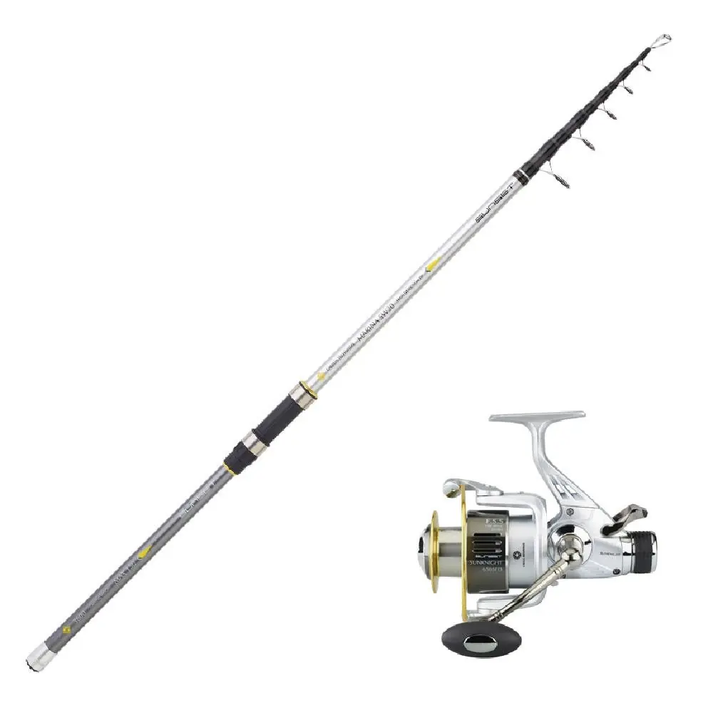 Composed of the telescopic rod Marina SW20 360 and the reel Sunknight FD 6505. The Marina SW20 rods allow you to practice sea fishing in search of sparids from the piers and breakwaters. The telescopic Sunset Marina SW20 rods are equipped with a carbon blank and a multicoloured fibreglass tip for optimal detection of the most subtle bites! The Sunset Sunknight FD FSS (Free Spool System) reels have been designed for fishing sparids from the shore as well as from a boat. The free spool system allows fish to take the bait without feeling any resistance. The Sunset Sunknight FD FSS reels are equipped with five stainless steel ball bearings, an aluminium spool, an additional aluminium spool, and an infinite anti-reverse!