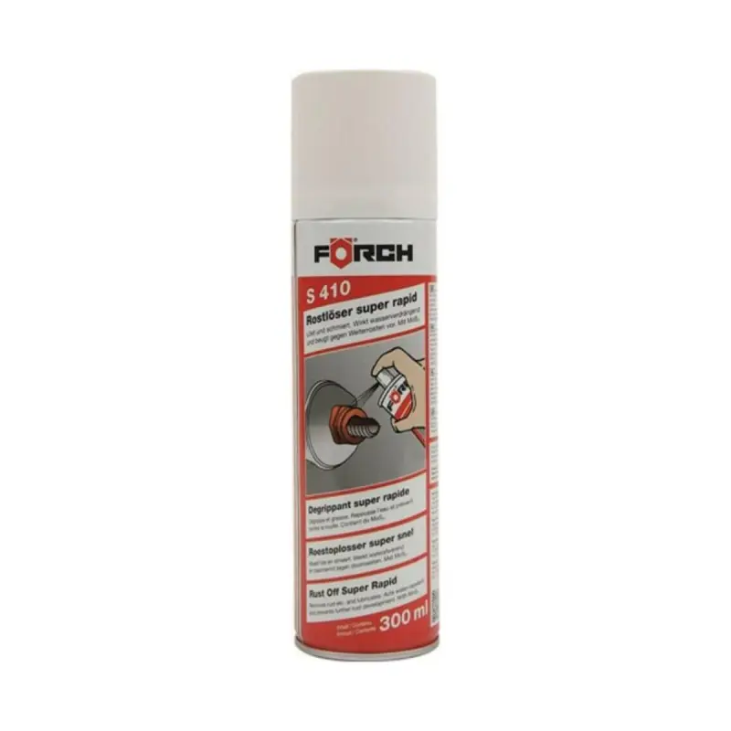 The super fast S410 FORCH release agent is designed to effectively intervene on assemblies blocked by rust, oxidation, or dirt. Its ultra-fast penetrating formula works deeply to free bolts, nuts, hinges, or mechanical parts even if they are heavily corroded.