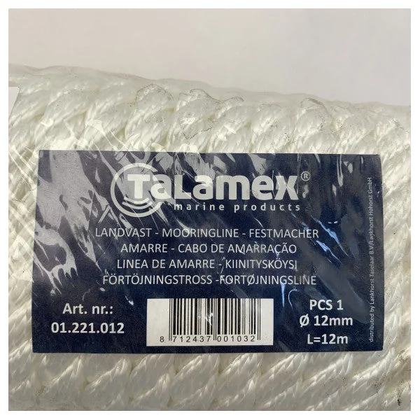 Talamex Mooring Rope 12mm - 12M White - 01.221.012: Reliable Mooring Line for Worry-Free Docking