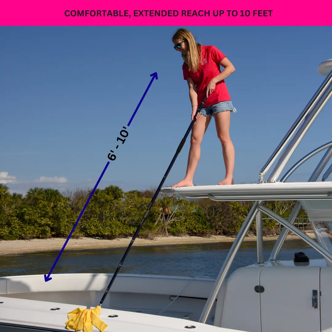 Upgrade your maintenance game with Palm Beach Reach, TD Mop’s royal blue carbon fiber extension handle. Designed for effortless reach and precision, this ultra-lightweight handle is compatible with TD Mop snap-on mops and brushes. Whether you're tackling boats, cars, or super yachts, Palm Beach Reach gives you the power to clean smarter—not harder.