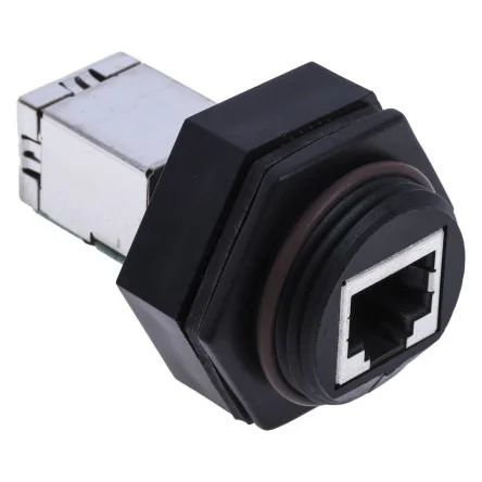 Reliable RJ45 female connector for seamless ethernet integration in cabinets and control boxes.