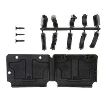 AMPLIMITE D-Sub Connector, HDP Series, Unshielded Box and Lid Backshells. AMPLIMITE unassembled hinged box and lid unshielded cable clamps or backshell kits with a 180 and 90° cable exit option. These AMPLIMITE box and lid unshielded backshells have black thermoplastic housings with a textured finish, black thermoplastic gates and black zinc plated steel flat head screws. The cable diameter of these AMPLIMITE box and lid backshells can be adjusted by changing the cable support gates. The flat side of the cable support gates are for use with discrete wire and the semicircle side for use with jacketed cable. These AMPLIMITE backshells are for use with HDP Metal-Shell series d-sub connectors. For male screw retainers see stock numbers ; 450-9208 450-9208 and ; 717-4498 717-4498 typically. For female screwlocks see stock numbers ; 717-4543 717-4543 , ; 450-9270 450-9270 and ; 717-4546 717-4546 typically. For locking post assembly see stock number ; 450-9365 450-9365 For spring latches see stock number ; 450-9321 450-9321 For latching blocks see stock numbers ; 450-9371 450-9371 and ; 680-9392 680-9392 typically.