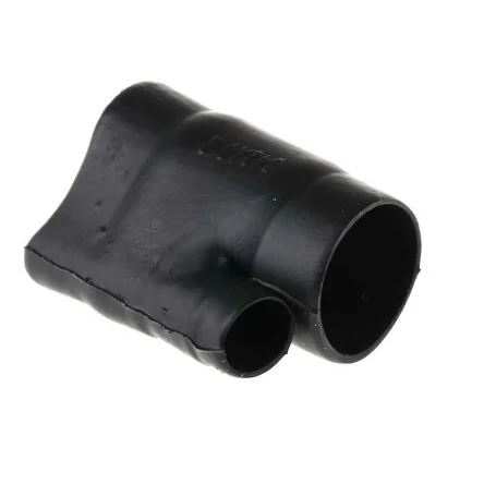 45° and 90° Side Breakout. T-shaped moulded parts with 45° or 90° side breakouts. Manufactured from heat shrink DR-25 material these moulded parts have good resistance to aggressive chemicals at high temperature. Features and Benefits. • Provides strain relief, protection and mechanical support • Shrink Ratio 2:1 • Flame retardant