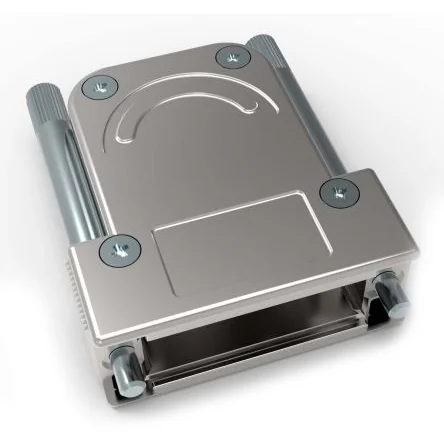 High-quality angled D Sub backshell with EMI shielding and flexible cable exit options for reliable connections.