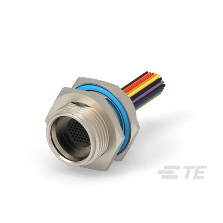 This TE Connectivity circular connector features 44 female contacts and an IP68 rating for secure panel mounting.