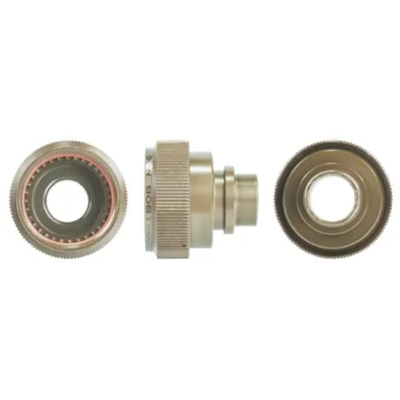 These Tinel-Lock cable adapters are for use with code 40 Raychem MIL-C-3899 connectors code 40 as follows; D38999/20, Series III: Class C, F, K, W - Receptacle, wall mount flange D38999/24, Series III: Class C, F, K, W - Receptacle, jam nut mount D38999/26, Series III: Class C, F, K, W - Plug, EMI grounding fingers D38999/40, Series IV: Class C, F,W - Receptacle, wall mount flange D38999/46, Series IV: Class F,W - Plug, EMI grounding fingers D38999/47, Series IV: Class C,W - Plug When these Spin-Lock cable adapters are mated with these connectors a water tight seal will be provided meeting requirements of MIL-C-85049, PAR 3.5.7. TE Connectivity TXR Series MIL-C-38999 Tinel Lock Adapters. These TXR series MIL-C-38999 tinel lock adapters designed to terminate a braided cable shield to a connector (Raychem code 40 D38999 connector (see note). These Tinel Lock adapters are a two piece system and consist of a aluminium alloy modified spin coupling onto which the braid is terminated which then interfaces with the rear threads of the connector and a Tinel-Lock ring. The Tinel-Lock ring is made of a special shape memory metal that shrinks uniformly when heated permanently attaching the cable shield to the adapter body. The resulting 360°C termination is able to withstand shock, vibration, thermal cycling and corrosion and the terminated cable can then be sealed and protected using a heat-shrinkable moulded boot. These MIL-C-38999 Tinel Lock adaptors are available in a choice of finishes; TXR40AB00-xxxxAI - Cadmium Finish, Olive Drab TXR40AC00-xxxxBI - Electroless Nickel Finish TXR40AU00-xxxxAI - Zinc Cobalt Finish TXR40AZ00-xxxxAI - Zinc Nickel Finish