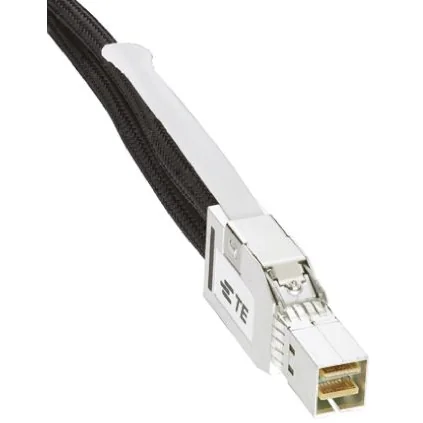 TE Connectivity Mini SAS HD Direct Attach High Speed Copper Cable Assemblies. Mini SAS (Serial Attached SCSI - 2.1) HD direct attach high speed passive copper cable assemblies that use cable brand twin-axial (TURBOTWIN) copper cable and are able to support broadband optimized for 6 and 12 Gbps. These Mini SAS HD cable assemblies have an EEPROM signature that can be customized, pull tab latching for reduction in insertion force and increase in retention force and dual exit cable connector backshells. All cable assemblies accept a wire size of 28 AWG. Stock number ; 775-4899 775-4899 is a Mini SAS HD 4x to Mini SAS HD 4x 1m cable assembly that supports 6/12 Gpbs Stock number ; 775-4892 775-4892 is a Mini SAS HD 4x to Mini SAS HD 4x 3m cable assembly that supports 6/12 Gpbs Stock number ; 775-4896 775-4896 is a Mini SAS HD 4x to Mini SAS 4x 1m cable assembly that supports 6 Gpbs Stock number ; 775-4906 775-4906 is a Mini SAS HD 4x to Mini SAS 4x 3m cable assembly that supports 6 Gpbs