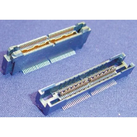 TE Connectivity High-Speed MICTOR Stacking Connectors. MICTOR (Matched Impedance Connector) high-speed stacking connectors with a high density design for use in high-speed data switching applications with excellent performance to 10+ Gbit/s. MICTOR is a 2 piece modular system consisting of PCB plug and receptacle connectors. MICTOR connectors have a microstrip design, each connector consists of two rows of signal contacts separated by a centre ground plane that enables a high-speed operation. The signal pins have a high density configuration of 76 signal pins per linear inch. Connector sizes range from 38 to 266 signal lines in increments of 38 positions. MICTOR connectors feature a discrete ground bus at every 38 positions that can be assigned to power or ground in any combination. These MICTOR connectors use a redundant point of contact dual beam contact design for high electrical reliability. The housings of these high-speed MICTOR connectors are polarized to prevent mismating. PCB retention features also ensure a secure connection to the PCB. These MICTOR connectors are available in various mating heights for board to board applications and can also be used in right angle, coplanar and cable to board applications. Features and Benefits. • Excellent performance to 10+ Gbit/s • Micro strip design • High density design with 76 signal pins per linear inch • 38 to 266 signal lines in increments of 38 positons • Redundant points of contact for improved electrical reliability • Range of mating heights for board to board applications • Polarization to prevent mismating • PCB retention features • Suitable for automated assembly process. Applications. These high-speed MICTOR connectors are for use in high-speed applications for a broad range of single-ended and differential pair applications. Applications include high-speed telecommunications enterprise switching equipment, mid-range servers, storage area networks and high-speed custom platforms