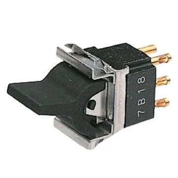 Miniature Lever/Rocker Switches. Switches with body and switch mechanism identical to the miniature toggle switches with silver contacts, but fitted with alternative style of actuators in a choice of colours Each switch is supplied with an optional black bezel that may be fitted by snapping it over the flanges on two sides of the switch, prior to fitting to a panel by means of clipping the frame into a prepared cut-out (hole cutter see stock no. ; 545-323 545-323 is suitable) These switches have the advantage of toggle switch design, compact dimensions, and are useful where toggle levers are undesirable The use of alternative styles and colours allows the possibility of coding switch functions Contact Rating-A 6A Contact Rating-V 28Vdc/250 Vac