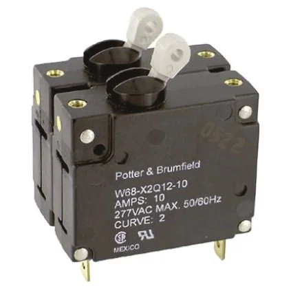 TE Connectivity Thermal Circuit Breaker - W68 2 Pole 277V ac Voltage Rating, 10A Current Rating - W68-X2Q12-10