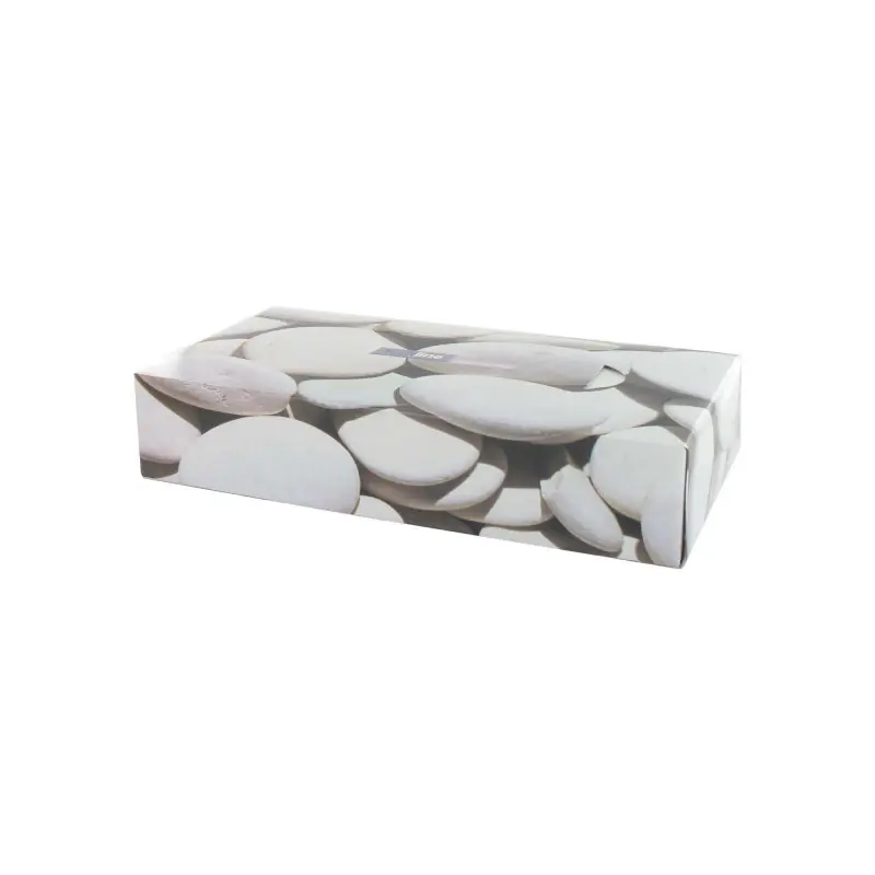Box of 100 white 2-ply tissues made from pure virgin pulp. PE seal for perfect hygiene and better distribution. Soft to the touch and a practical box for daily use.