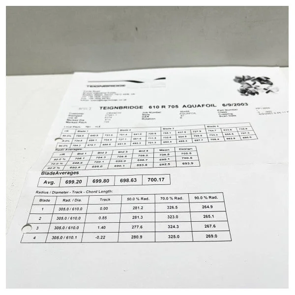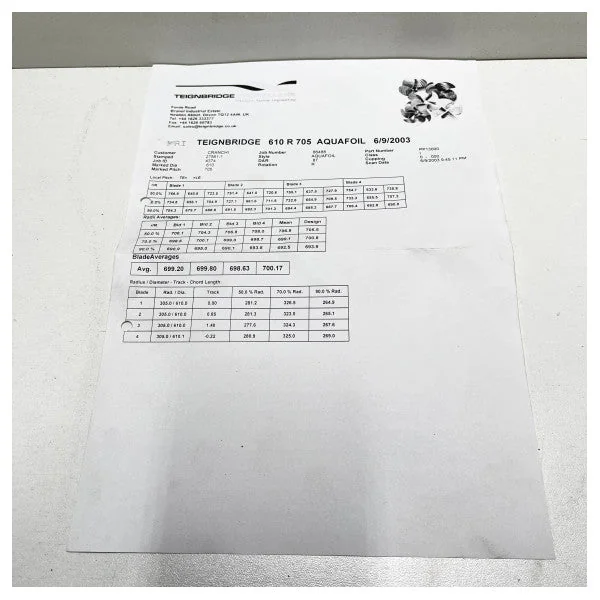 The Teignbridge 4-blade nibral propeller 610 x 705 R - 33255041 is a high-quality, robust propeller suitable for vessels up to 7000 kW. The propellers are made from the best materials to reduce weight gain and enhance efficient operation. The design has been developed to provide optimal streamlining, which increases performance and reduces fuel consumption. Features of this propeller include the 4-blade design with a double-acting and powerful pull rod for hours of operation. The design using computer modelling contributes to the reliability and strength of the Teignbridge propeller. This propeller offers a good balance between propulsion and noise production. Ease of maintenance is ensured by a long lifespan, resulting in low operating costs. This propeller delivers reliable performance and is therefore a good choice for professional and recreational maritime applications.