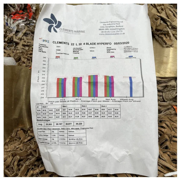 Riwall Nibral Hyperform Propeller 22 x 30 inch LH - PR22.30.27A Product description: The Riwall Nibral Hyperform Propeller 22 x 30 inch LH - PR22.30.27A is a high-quality propeller designed for optimal performance and reliability. The propeller is made from Nibral, a corrosion-resistant alloy that is perfect for use in saltwater. The Hyperform blades ensure efficient and smooth operation, while the LH rotation (left-handed) provides extra thrust. Features: Made from Nibral, a corrosion-resistant alloy Hyperform blades for efficient and smooth operation LH rotation (left-handed) for extra thrust Three blades Hub bore: 1 inch Weight: 4.5 kg Specifications: Diameter: 22 inch Pitch: 30 inch Rotation: LH (left-handed) Material: Nibral Number of blades: 3 Hub bore: 1 inch