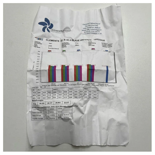 Riwall Nibral Hyperform Propeller 22 x 30 inch RH - PR22.30.28A Product description: The Riwall Nibral Hyperform Propeller 22 x 30 inch RH - PR22.30.28A is a high-quality propeller designed for optimal performance and reliability. The propeller is made from Nibral, a corrosion-resistant alloy that is perfect for use in saltwater. The Hyperform technology ensures more efficient operation and a higher RPM, resulting in increased speed and thrust. Features: Material: Nibral (a corrosion-resistant alloy) Diameter: 22 inch Pitch: 30 inch Rotation: Right-hand (RH) Number of blades: 3 Hub bore: 1 inch