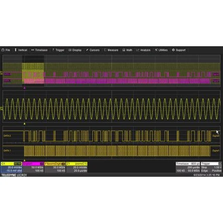 Teledyne LeCroy WS3K-EMB Trigger and Decode Package for WaveSurfer 3000. WS3K-EMB is an I ;sup>2 ;/sup>C, SPI, UART and RS-232 trigger and decode package for WaveSurfer 3000. Teledyne LeCroy decode solutions use colour-coded overlays on sections of the protocol for a comprehensive visual display. Depending on the time base or the amount of zoom, the decode information is condensed or expanded to better assist in understanding events during short or long acquisitions. Users can isolate specific protocol message events for better understanding and debug. A conditional DATA trigger can be used to select a range of DATA values to trigger on (not just a single DATA value). Results can be summarised using a convenient table display and the powerful search engine can quickly find an Event, Packet, Transaction or Protocol Error.