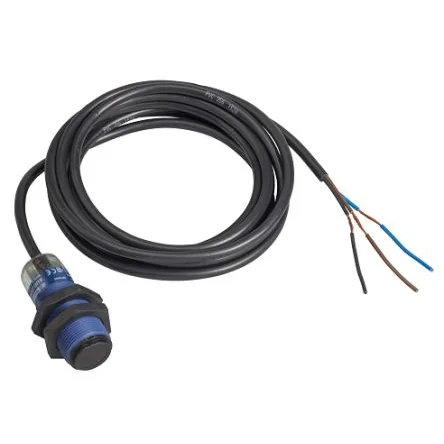 The Schneider Electric XU series photoelectric proximity sensor is used to dedicate material handling, packaging, labelling, assembly, lift & escalators or food & beverage industries. This series offers many functionalities such as Diffuse mode, Background Suppression (BGS), polarized reflex, laser reflex & through-beam or through-beam, available in the 4 most popular formats worldwide. A photoelectric sensor basically comprises a light beam transmitter (light-emitting diode) and a light-sensitive receiver (photo-transistor). A light-emitting diode is an electronic semi-conductor component that emits light when an electric current flows through it. This light can be visible or invisible, depending on the transmission wavelength.Material Plastic Line of sight type Axial Type of output signal Discrete Supply circuit type DC Wiring technique 3-wire Discrete output function 1 NO Cable length 5 m Emission Infrared diffuse