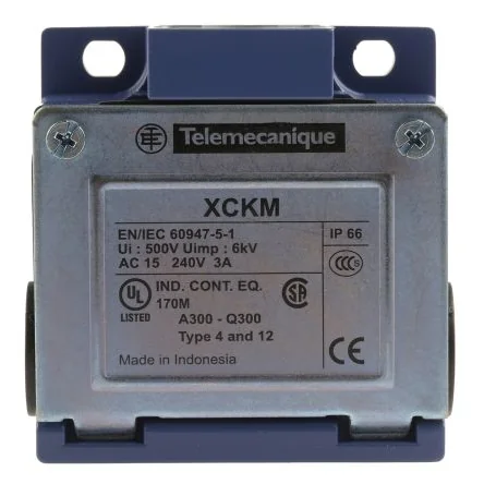 VDE0660, IEC947-5-1. UL, CSA. Telemecanique Limit Switches. Introducing Telemecanique XCKM range of limit switches and accessories. These Telemecanique limit switches are the perfect solution for a multitude of applications including escalators, electrical assembly equipment and material handling. A limit switch is commonly made up of an actuator head, switch body and receptacle, predominantly used as part of a control system within industrial applications such as those listed before. How does a limit switch work?. The limit switches function through a contact proximity sensor device that features an actuator that is mechanically linked to a set of output contacts. When an object comes into contact with the actuator, the device then operates the contacts to make or break an electrical connection.