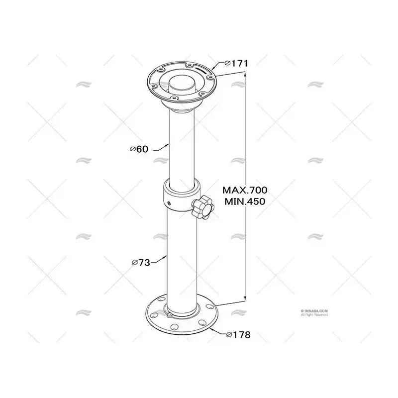 The telescopic detachable table leg is the ideal accessory to optimize space in the cabin or salon of any boat. It allows the table height to be adjusted and easily detached when not in use, thus facilitating onboard livability and comfort.