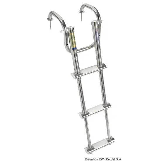 Stainless steel telescopic ladder made of polished AISI 316 stainless steel.