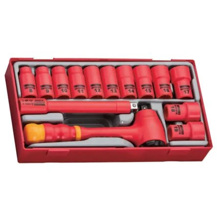 Teng Tools 14-Piece Metric 3/8 in Standard Socket Set with Ratchet, 6 point, VDE/1000V - TTV3814