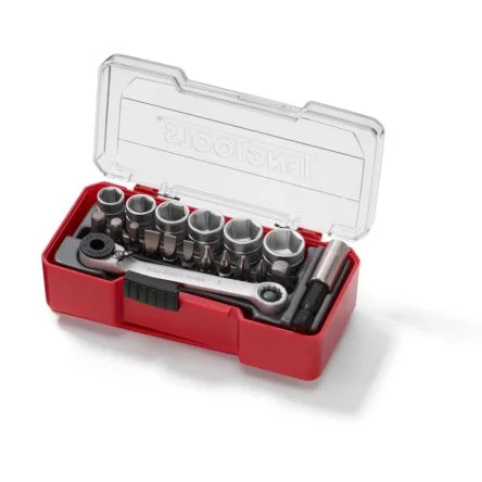 This 19-piece metric socket and bit set includes a ratchet, perfect for versatile and efficient tool use.