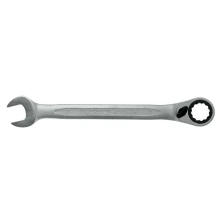 The Teng Tools metric ratcheting combination spanner which is a ring and open ended spanner combined with the same size opening at each end. It is available with Teng Tools hip grip design on the ring end for contact with the flat side of the fastening for damage reduction and use on rounded nuts and bolts. It is widely used for rapid tightening and loosening of fastenings.Off set at 13° for easier use on flat surfaces 72 teeth ratchet spanners giving a 5° increment between clicks Reversible ratchet mechanism with a flip reverse lever Designed and manufactured to DIN3113A
