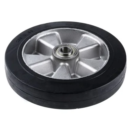 Tente Black Elastic Tyre. Heavy duty black elastic tyres from Tente. The tread of these wheels is made from a black vulcanized elastic and the centre is made from aluminium. These wheels from Tente also have precision ball bearings. Available in a variety of sizes to suit different applications.