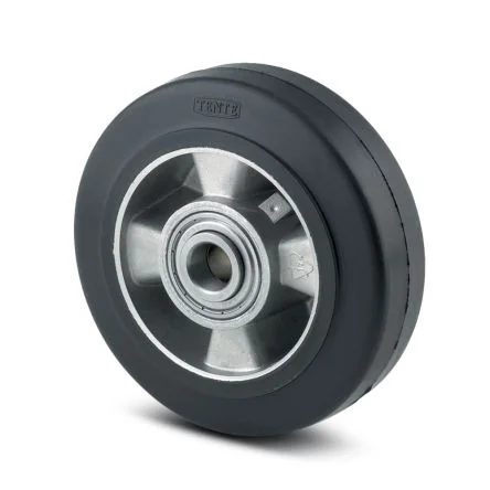 Durable aluminium trolley wheel with a 350kg load capacity and precision ball bearings for smooth operation.