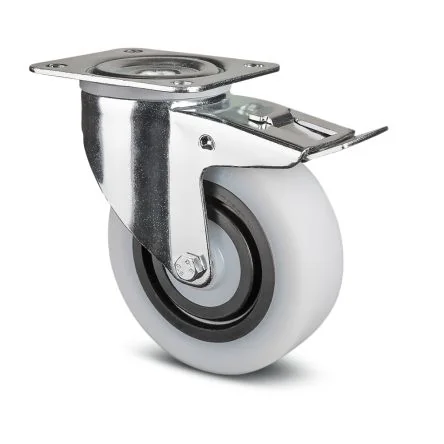 Heavy-duty braked swivel castor wheel with a 200kg capacity for easy mobility.