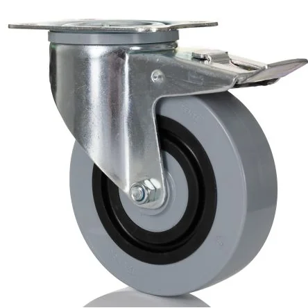 Tente Braked Swivel Castor Wheel, 400kg Capacity, 125mm Wheel - 3477HUR125P62 grey