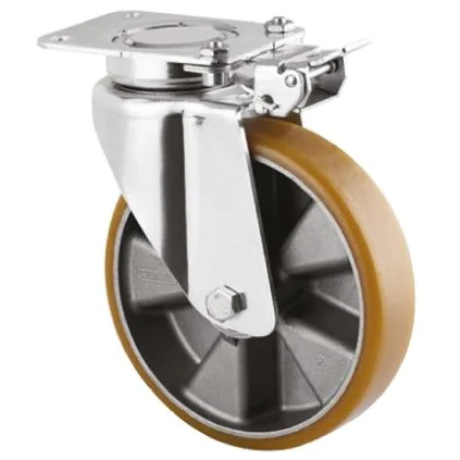 Tente Heavy Duty Swivel Castor. Heavy duty swivel castors from Tente. Made with polyurethane wheels and an aluminium centre. The castor housing is made from pressed steel. Available in a variety of wheel diameters and with or without brakes.