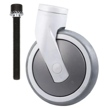 Institutional Castor - Synthetic, Series 5370. Tente Series 5370 LEVINA single wheel bolt-hole castors are manufactured from high grade synthetic materials that are generally resistant to all detergents and disinfectants currently available. The castors incorporate a double ball bearing precision swivel head, and grey TENTEprene (thermoplastic rubber) non-marking tyre. M10 bolts are included with the LEVINA castors which can be removed without removing the castor wheel. The polypropylene wheel castors can accept a static load of 200kg, and a dynamic load of 100kg. Features and Benefits. • Solid castor housing that guarantees long life • High quality tread materials ensure exceptional castor rolling properties • Short castor brake pedal offers easy operation and smaller swivel radius • Smooth surface making the castor design easy to clean • Modern castor design enhancing products that they are used with