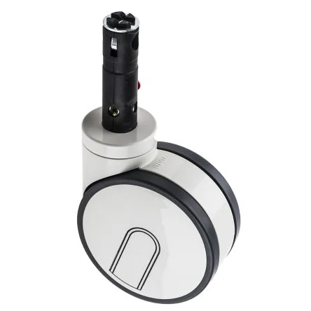 EN 12531. Hospital Bed Castor Twin Series 2940. 2940 Swivel castor 2944 Swivel castor with central, total ; directional lock 2946 Swivel castor with central lock Compatible with HNE Kingsfund / Modular ; Contoura beds Non marking tread Washable Solid plug fitting on 2940 swivel castor Stem with D cam operation system on 2944 ; 2946 Swivel head/wheel has precision ball bearings Solid plug fitting Material Frame: Steel, Yellow zinc plated Housing: Synthetic plastic Wheel centre: Polyamide Tread: Polyurethane
