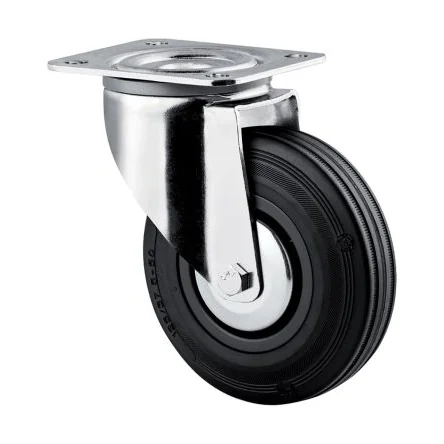 Industrial Castors, Black Rubber Tyre, Series 3470 . Polypropylene wheel centre Zinc chromated metal work