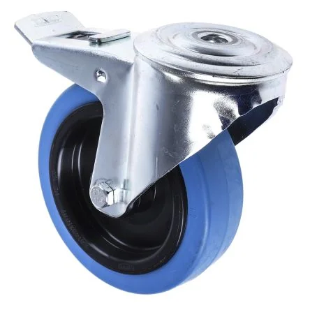 Blue Elastic Rubber, Zinc Plated Steel, Tente. Non-marking castors with a elastic, vulcanised tyre. These castors have a zinc plated steel body passivated for greater corrosion resistance and precision ball bearings. Tente's castors are suited to a variety of industrial applications and use universal fittings to aid alteration and assembly. Available in a variety of sizes in locking and non-locking types, fixed and swivel.