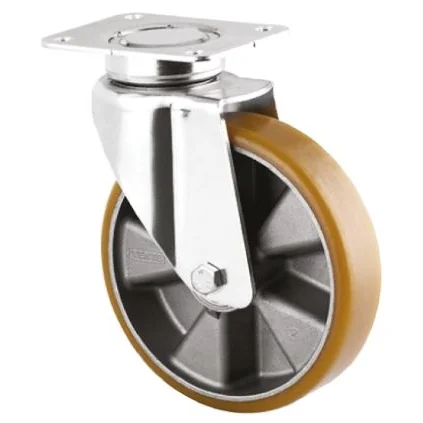 Tente Heavy Duty Swivel Castor. Heavy duty swivel castors from Tente. Made with polyurethane wheels and an aluminium centre. The castor housing is made from pressed steel. Available in a variety of wheel diameters and with or without brakes.