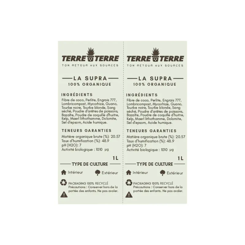 Combining expertise in culture and ingenuity, Terreterre is carrying out an ambitious and sustainable development project that addresses the issue of impoverished soil, which hinders the growth of your plants. A 100% organic offer that respects the environment on a balcony vegetable garden terrace in Terreterre meets all your needs with two soils of spectacular virtues: The base and the supra soil. Combined with filtered water, Terreterre's potting soils promote extraordinary growth and exceptional quality for your plantings.