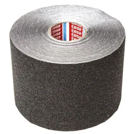 Tesa® Non-slip Adhesive Tape. Tesa® non-slip adhesive tapes are perfect for marking out hazardous areas that require safety footing. The robust and versatile tapes are partially fluorescent making them easy spot. Their rough, slip-resistant surface offers excellent adhesion, whilst preventing slippage in the workplace. Furthermore, the rough abrasive texture makes them suitable for use on demanding surfaces. The tapes can be easily torn by hand and no shrinkage occurs after application. Tesa® non-slip adhesive tapes are also resistant to water, temperature, UV and cleaning products making them ideal for use in a wide range of environments and feature an EAN label. Features and Benefits. ;ul> ;li>Excellent Anti-slip (1 to 2 years in normal use areas) to reduce slippage ;/li> ;li>Good adhesion and self-adhesive for quick and easy application ;/li> ;li>Suitable for use on demanding surfaces and areas with high footfall ;/li> ;li>Reduces accidents ;/li> ;li>Highly visible for quick identification of hazardous areas ;/li> ;li>Hand tearable eliminating the need for cutting tools ;/li> ;li>No shrinkage after tape is applied ;/li> ;/ul>. Applications. Tesa® non-slip adhesive tapes are perfect for use in environments that require safety footing to be worn. The rough texture provides excellent grip with anti-slip properties to prevent slippage, whilst providing easy identification of hazardous areas. These durable anti-slip tapes are perfect for use in areas that feature high volumes of footwear and demand such as warehouses and factories. Is this tape suitable for die cutting?. Yes, this tape is suitable for die cutting.