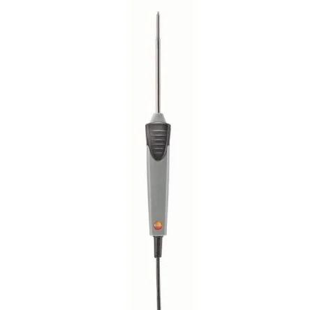Waterproof Immersion/Penetration Probe in DetailUse the waterproof immersion/penetration probe (with the compatible measuring instrument) to carry out fast, precise temperature measurements in liquids and semi-solid media. For precise temperature measurements: Use the waterproof immersion/penetration probe with a compatible measuring instrument (please order separately) for carrying out temperature measurements in liquids and semi-solid media.Features and Benefits• Measuring range from -50 to +150 °C; accuracy of up to ±0.2 °C • For measurements in liquids and semi-solid media • Temperature probe with NTC temperature sensor • Waterproof – in accordance with protection class IP67Waterproof immersion/penetration probe in detail• Use the fixed cable to connect the immersion/penetration probe to the measuring instrument (please order separately). The immersion/penetration probe is equipped with a high-quality NTC sensor, is easy to use and features high measuring accuracy of up to ±0.2 °C. • The waterproof immersion/penetration probe is designed for temperature measurements in liquids and semi-solid media and offers numerous application options. For example, it is ideal for measuring the temperature of water and for carrying out sophisticated temperature measurements in the area of food production.